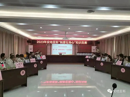 陽春三月、風和日麗。為推動公司制度建設(shè)的整體規(guī)劃、鞏固、提升全體員工的綜合素質(zhì),以賽促學(xué)、以學(xué)促干,形成公司自主學(xué)習(xí)的良好氛圍。經(jīng)公司行政人事中心精心策劃,2023年3月10日下午2點,在經(jīng)開區(qū)黨群活動中心隆重舉行了2023年安地亞斯第一屆“制度在我心”知識競賽。此次競賽內(nèi)容涵蓋企業(yè)文化、行政制度、產(chǎn)品知識、安全知識、品質(zhì)知識、操作過程等全方面內(nèi)容。經(jīng)過各部門嚴格選拔,共有9支隊伍45人參賽。