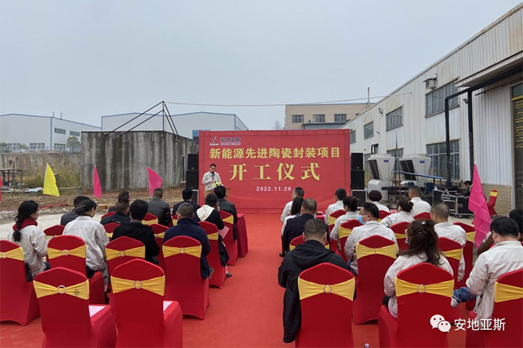 2022年11月20日早上,萬里無云,溫暖的陽光灑滿大地,公司新能源先進陶瓷封裝項目工地上彩旗飄飄、火紅的氣球隨風(fēng)飄揚。主席臺上“新能源先進陶瓷封裝項目開工儀式”幾個大字分外醒目,今天是安地人高興的日子,我們將在這里舉行新廠房建設(shè)開工儀式。